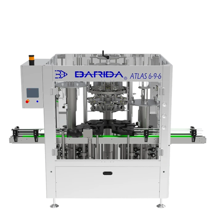 The passage of the bottle between the turrets is by means of a star which allows a gentle but at the same time rapid movement to avoid agitation of the product with consequent loss of Co2.