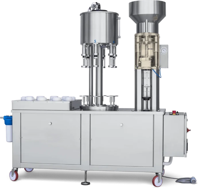 -6 valves rotary filler for filling with gravity system, automatic movement, pneumatic bottles