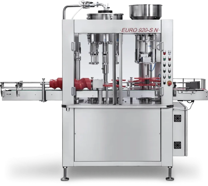 -Mechanical corker for still wine corks, automatic distribution of the corks through a hopper and