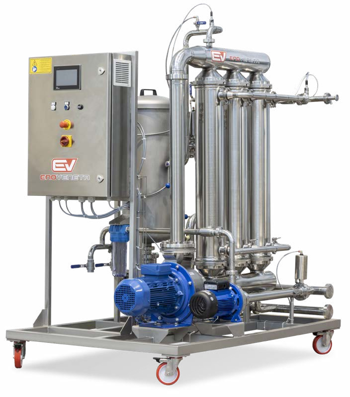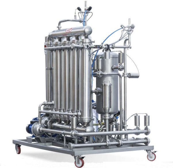 Tangential flow filtration aims to clarify products in one step, removing the need for additional filtration. This is accomplished by directing the liquid flow parallel to the filter medium. Our ENOFLEX tangential flow filters are engineered for high performance with minimal energy use and compact design. The range offers various models with different filter surfaces to meet diverse production needs.