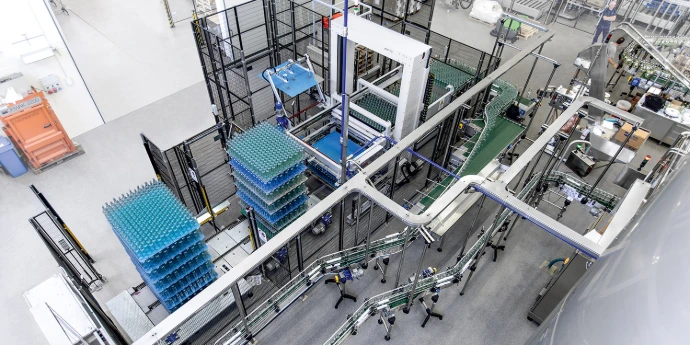 Neck-handling depalletiser is specifically crafted for efficiently depalletising empty bottles and containers. Utilizing inflatable tubes, it simplifies the manual depalletising process, enabling the transfer of a full layer to the bottling line in under a minute. This innovation reduces physical strain and frees up time for operators to focus on additional tasks, enhancing overall productivity.