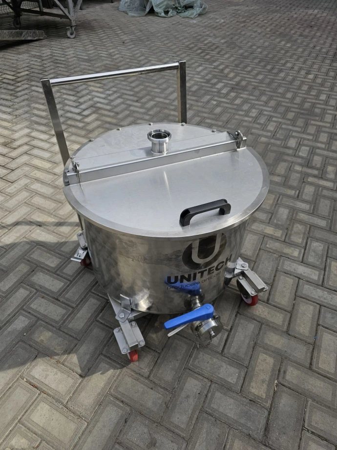 It serves as a versatile solution, functioning both as a temporary storage container and as a mixer when the mobile mixer is attached to the top.