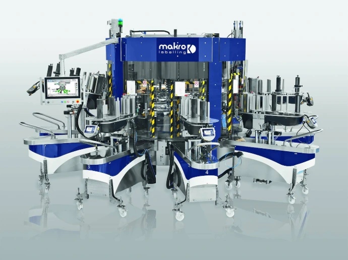 MAK Rotary labellers with fixed modules are designed for companies that do not need high production speeds. These machines consistently uphold the distinctive features of Makro Labelling technology and come with mechanical or electronic rotation of the bottle platforms. They include a door enclosure system mounted directly on the frame, ensuring a compact footprint.
