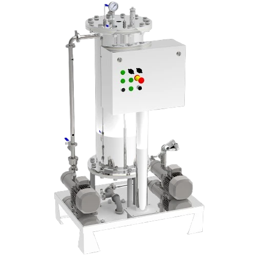 Our saturator is an advanced device designed to carbonate water and other liquids, including soft drinks, beer, and alcoholic beverages. It efficiently mixes CO2 with your chosen liquid, ensuring optimal absorption for consistent and homogeneous carbonation. The saturator includes an injection pump for the liquid, a mixing device with a gas inlet circuit, a mixing and temporary storage tank, and a booster pump for delivery. It operates independently with minimal oversight from an operator.
